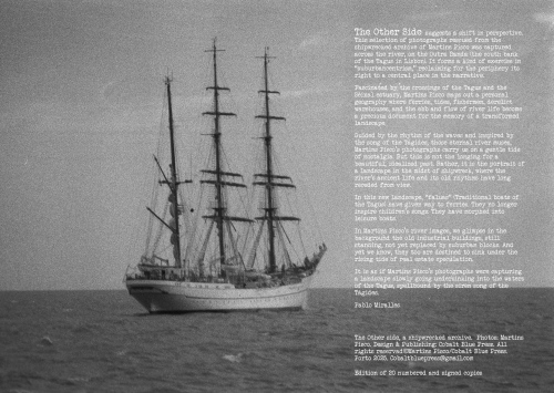Guided by the rhythm of the waves and inspired by the song of the Tágides, those eternal river muses, Martins Pisco’s photographs carry us on a gentle tide of nostalgia. But this is not the longing for a beautiful, idealized past. Rather, it is the portrait of a landscape in the midst of shipwreck, where the river's ancient life and its old rhythms have long receded from view. In this new landscape, faluas have given way to ferries. They no longer inspire children's songs. They have morphed into leisure boats.